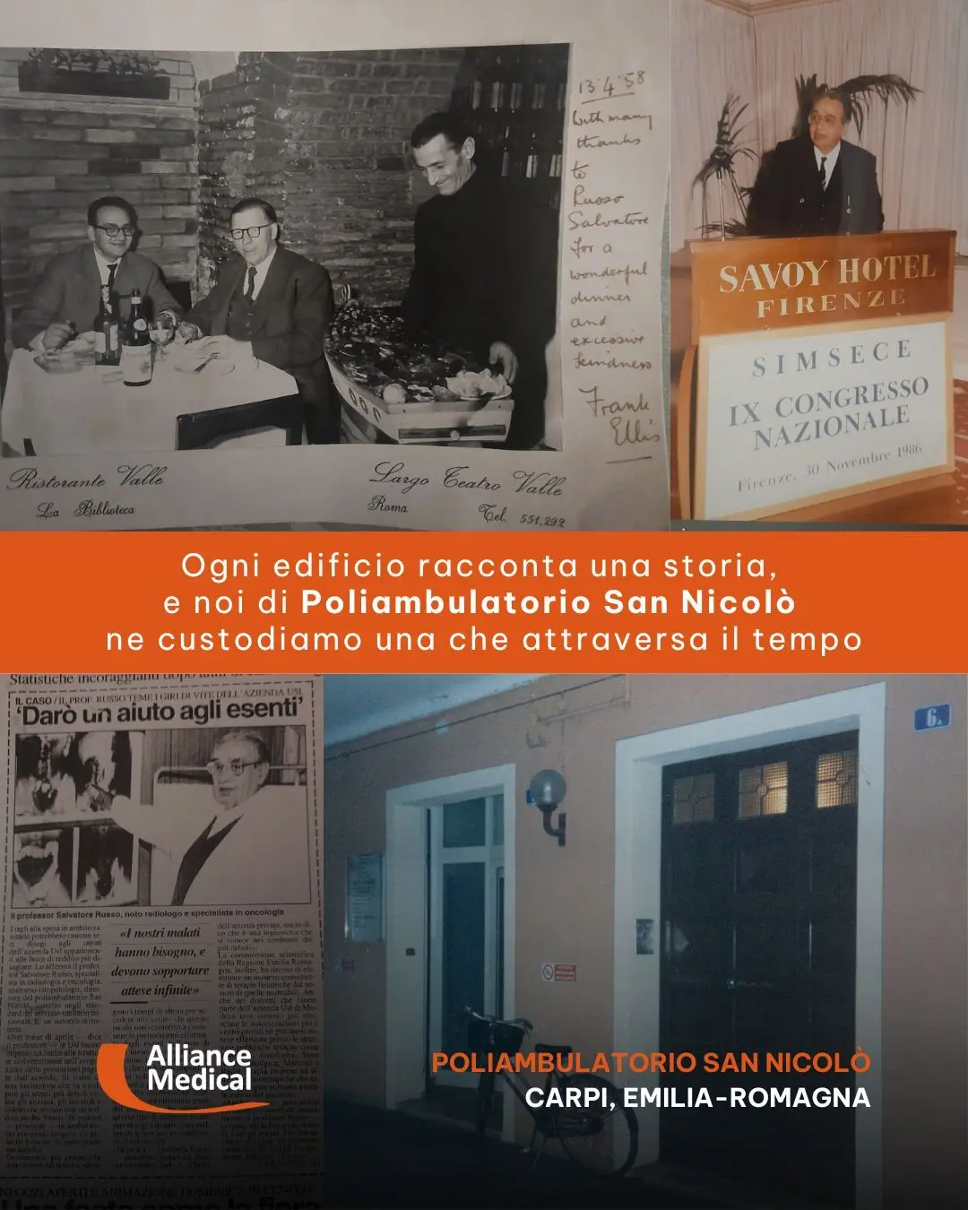 Professor Salvatore Russo passed away in June 2012. Thanks to his vision, foresight, and dedication, the San Nicolò Outpatient Clinic grew and became recognized by the people of Carpi as a center of excellence for instrumental diagnostics.